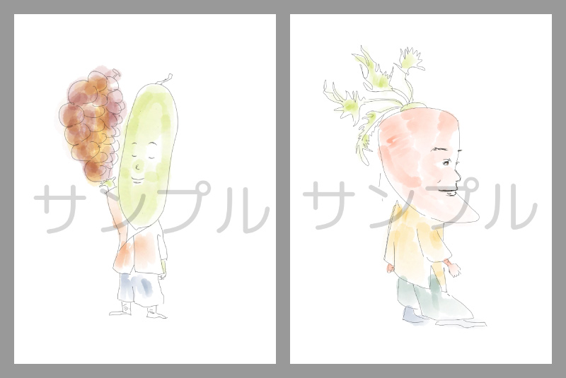 デジタルイラストはアナログイラストと風合いが異なりますので、サンプルをご確認ください。