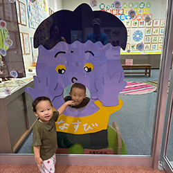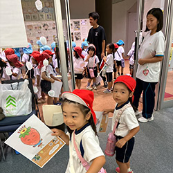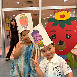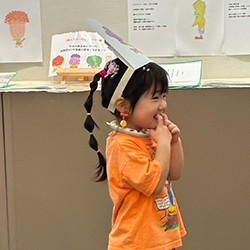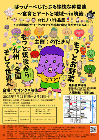 これまでののだぎりの活動の区切りとして初めて地元の福岡県筑後市での開催とあってとても多くの時間と労力、そして多くの支援者の皆様の支えによって実現した展示会です。そして真夏日の開催期間中に1100人を超える来場者がありました。その多くの方はご家族で親子で、そしてご高齢の方々でした。九州ダンボールさんに作って頂いたなすびくんといちごちゃんの顔出しパネルは予想通り大好評で、それ以上に驚いたのはお野菜お面作りと塗り絵が子供たちに大人気だったという事です。